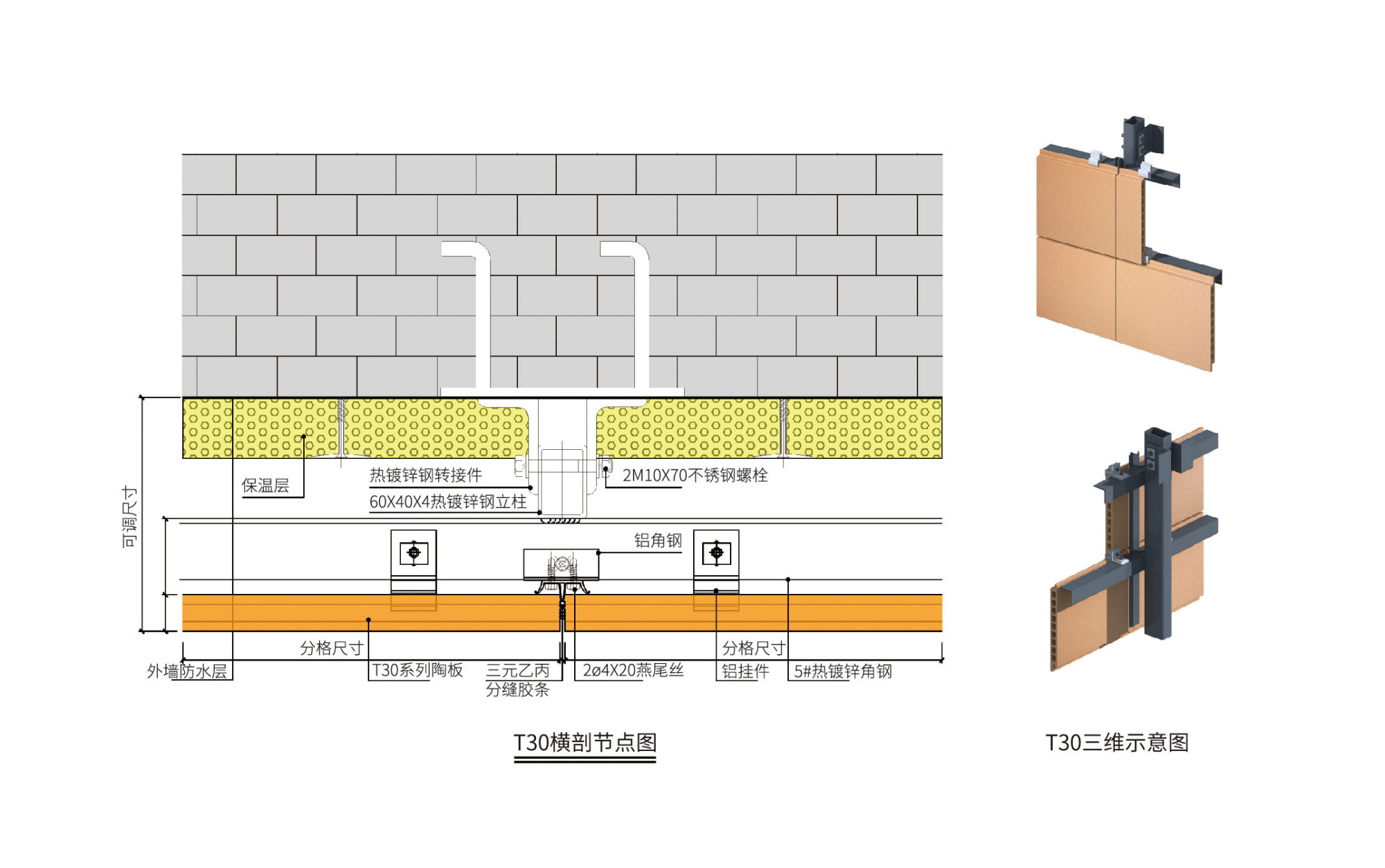 2、總厚度為19mm的陶板,由于國標對大于18mm的陶板其掛裝部位的厚度有要求,而這一要求在19mm的空間上難以實現,所以這一規格在市場上很難見到,這里不予表述。